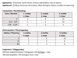 Poängberäkningen gäller både kategorierna Årets agilityhund och Årets agilitynykomling.